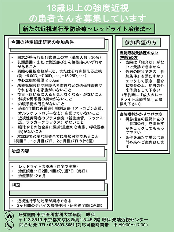 近年、強度近視の患者さんの約20%に、遺伝子検査の結果として別の病気に関連する変異が見つかることが報告されています。強度近視を引き起こしている疾患の具体的な遺伝的原因を特定できれば、個々の患者さんに最適な治療を提供することが可能になると考えられます。