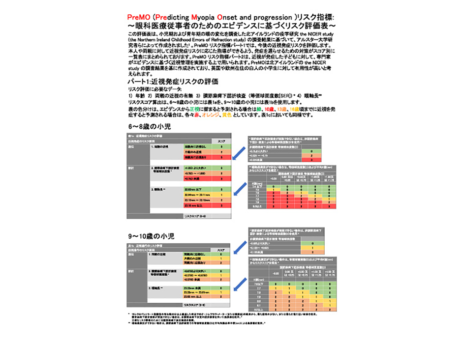 北アイルランドの疫学研究 the NICER studyの調査結果に基づいて、アルスター大学研究者らによって作成されたPreMoリスク評価表を許可を得て日本語訳しました。近視を重症化させないための早期管理にお役立てください。